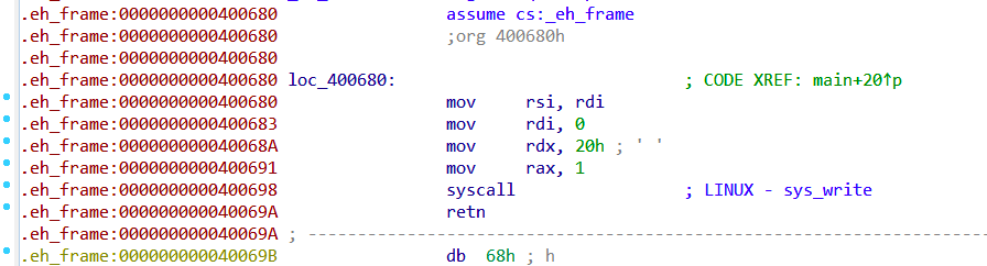 感觉上改.en_frame是目前对程序改动最小的通用方案,.eh_frame段会加载到程序中来,并且自身带有可执行权限,如果我们把patch的放到这里,首先我们没有附加任何东西,所以对程序的大小影响不大,其次他自带可执行权限,非常方便,缺点可能就是.en_frame的大小有限。