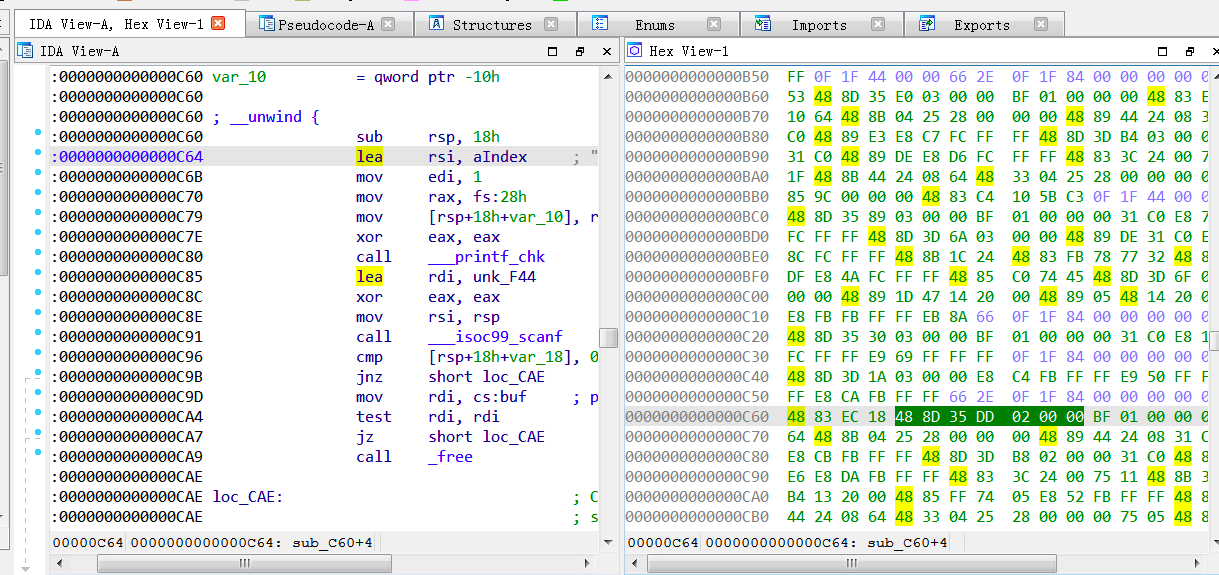 这里我偷了个懒,直接把最后的canary检查给关了,其实不关也行,或者是干脆用这几行的空闲来加上patch,我这里主要是想试试jmp,keypatch会直接帮你计算偏移,确实好用